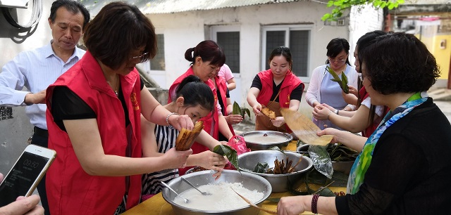 市特教学校还为大家准备好了包粽子的材料,志愿者们与教师们舞动起了粽叶,手指穿梭,青绿的粽叶、雪白的糯米在他们的手中瞬间便包成了一个个可爱的小粽子。看着自己包出来的形态各异的粽子,都忍俊不禁,到处充满了欢乐的气氛。