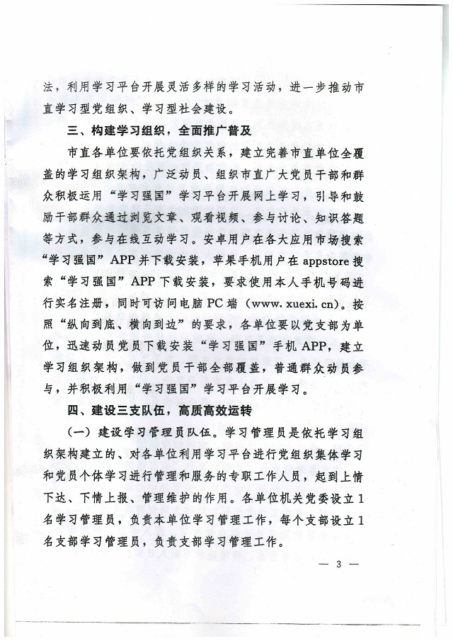 中共南阳市鸭灌局委员会关于转发《中共南阳市委市直工委关于做好“学习强国”学习平台推广运用工作的通知》的通知